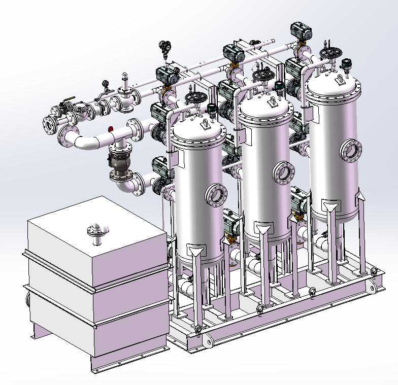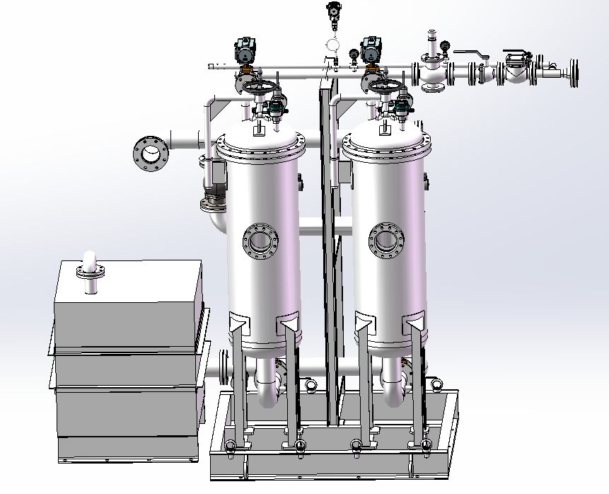氣體輔助自動(dòng)反沖過(guò)濾器由過(guò)濾器本體,氣源儲(chǔ)氣罐,切換閥、排污罐和PLC控制單元等產(chǎn)品組成系統(tǒng)。他的主要特點(diǎn)是可以自動(dòng)反沖洗,并且在任意反沖洗期間,只有一個(gè)容器處于反沖洗,而另一個(gè)容器一直處于在線工作狀態(tài),可以不間斷地過(guò)濾原料介質(zhì)。